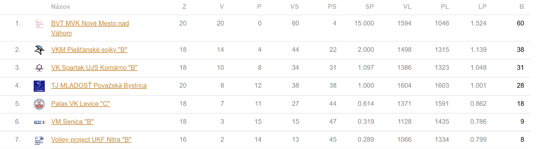 Tabuľka súťaže žiačky