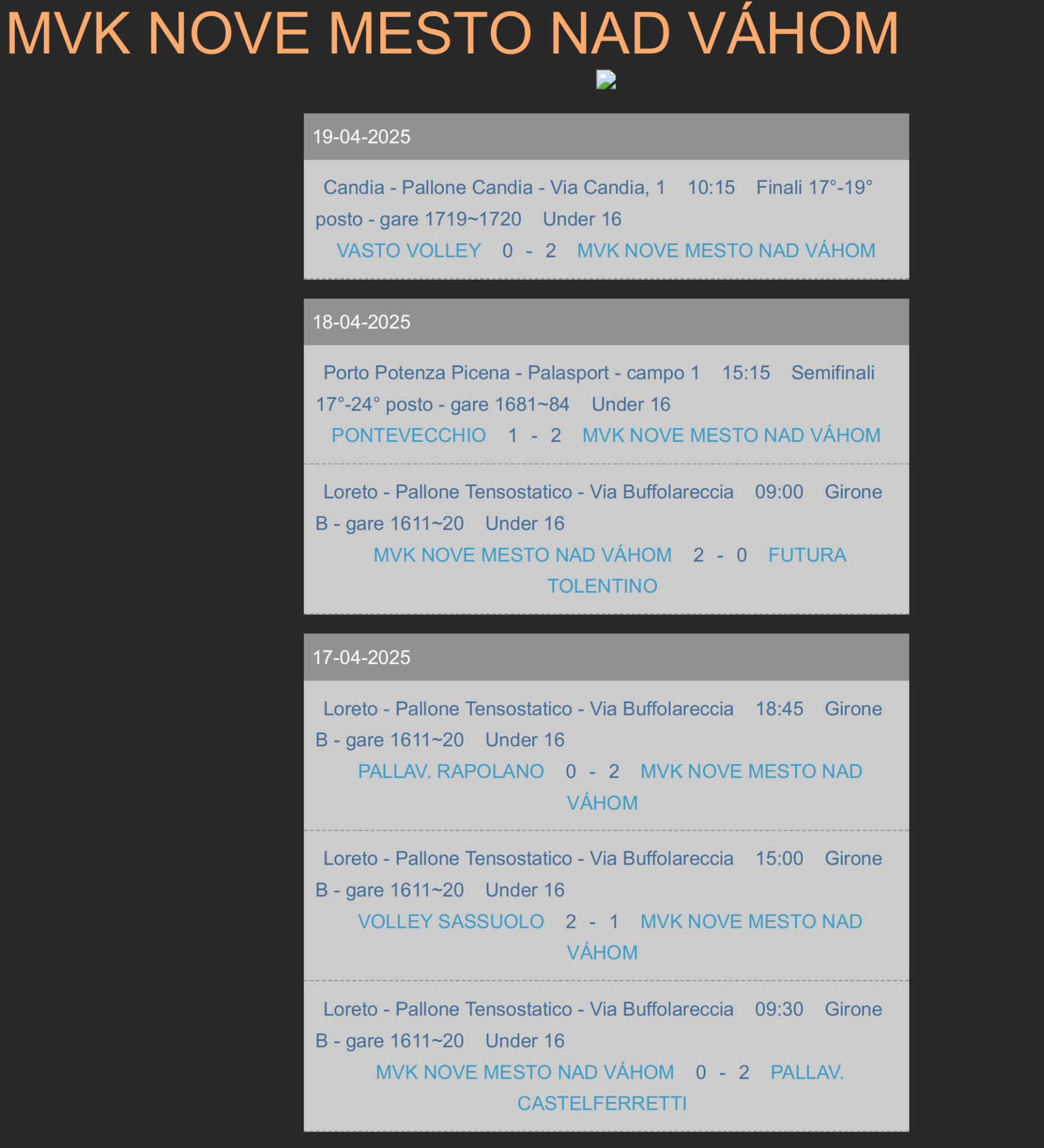 Boli sme oslovení organizátorom ohľadne účasti na turnaji EASTER VOLLEY 32 - Ancona 2026. Tak ako po minulé roky bude vedenie klubu nominovať hráčky na tento turnaj. Tento rok sa 31. ročníka turnaja zúčastnilo 126 družstiev z desiatich krajín v kategóriach U13 - U18. Je to jeden z najväčších turnajov v Európe pre mládež. Vľavo ponúkame prehľad našich výsledkov na turnaji ročníka 31.