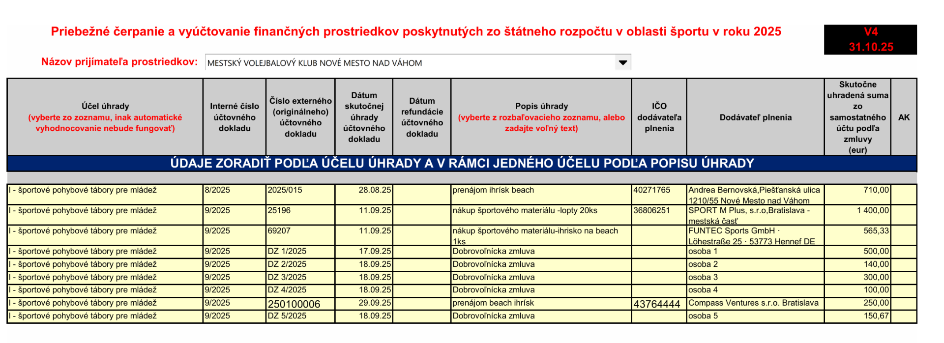 Vyúčtovanie zmluvy dotačný program šport.